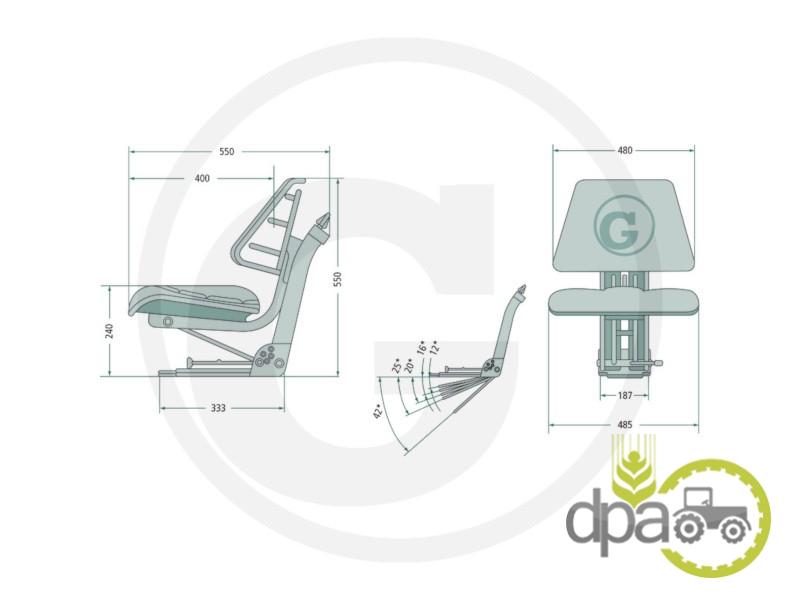 - consola scaunului este dotata cu 5 trepte de reglare a inclinatiei: 12°, 16°, 20°, 25°, 42°